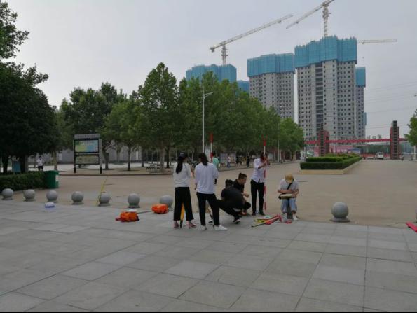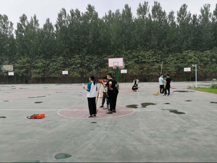18级学子分为4个小组,进行场地测量。