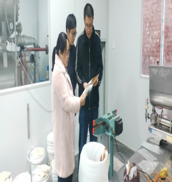 然后大家进入生产车间进行深度交流学习,对生产流程,生产加工中遇到的难题进行了探讨,并当场解决企业生产中遇到的问题:现场进行旋转杀菌锅的操作培训及注意事项。获得了企业的大力赞扬:旋转杀菌锅安装已久,但是因为疫情和其它原因,企业技术人员一直未能对工人进行系统培训,借着此次交流学习,解决了操作大问题,真是及时雨啊。