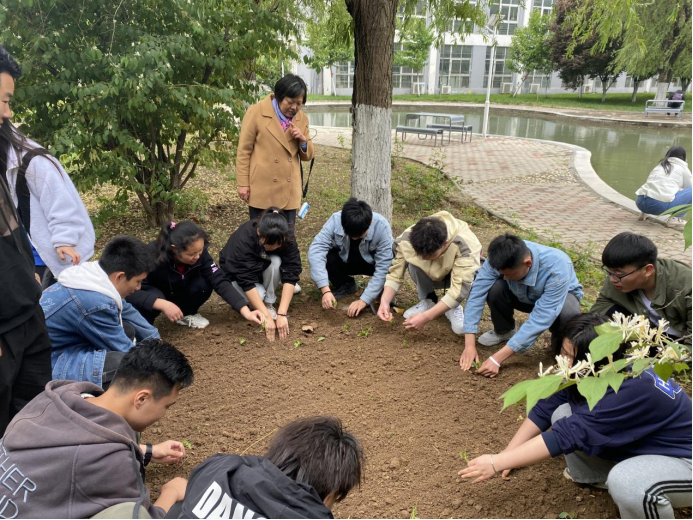 2021年4月27日上午,20级园林工程全体同学在何莉老师带领下在yl8858永利假山附近开展本学期课外实训活动,本次活动的主题:花卉栽培;养护;拔除杂草。