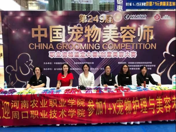 5月15上午yl8858永利李嘉、袁文菊、孙留霞在郑州顺利完成NGKC第249届宠物美容团队格鉴定大赛1+X考评员实习审查。