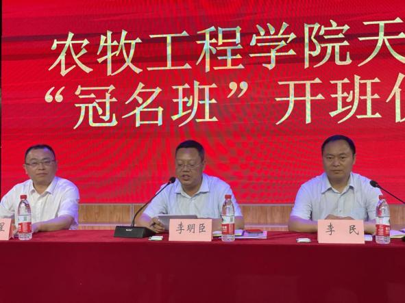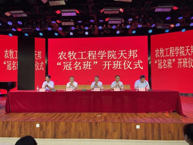 天邦企业代表饲料中心总经理张明星发言,他对此次冠名班开班表示热烈祝贺。他表示,此次冠名班开班,既是校企强强联合,进一步深化和拓展双方合作的具体表现,也是资源共享、优势互补、产教融合的重大成果。他同时希望,冠名班的员工一定要勤学苦练,认真学习理论和专业知识,掌握扎实过硬的本领,不负家长之嘱,老师之望,企业之盼,实现自我价值,为国家建设贡献力量。