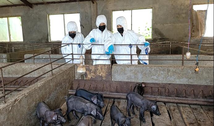 在沈丘县刘湾镇新徐庄村沈丘县鑫鴻养殖专业合作社,专家们穿着防护服,不顾大汗淋漓,深入黑猪圈舍现场采样、查看种公母猪、产房母仔猪的饲养管理、抗病猪群的选育等方面一一进行指导,合作社的负责人徐永红被专家们忘我的工作精神深深感动了,激动的说:“看到你们这么敬业,我坚持多年的黑猪养殖事业有了奔头,有了你们专业的帮助,我今年的母猪存栏量一定会有大的发展,非常感谢!”
