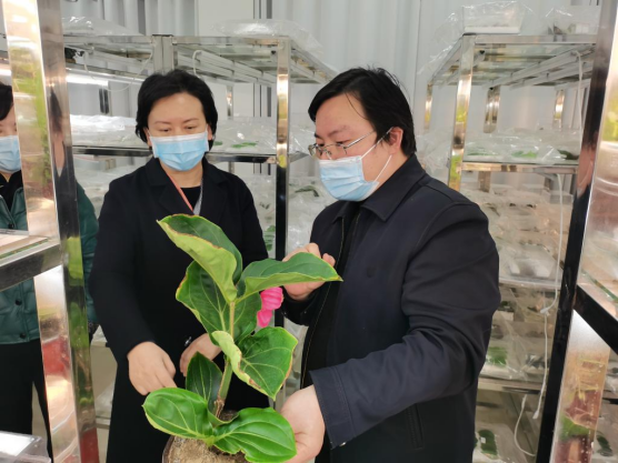 在公司“周口市植物新型快繁技术重点实验室”,岳文华为李艺老师送上鲜花和慰问金并向其致以节日的问候和新年的祝福。在和李艺亲切交流中,岳文华详细了解“植物新型快繁技术研究”发展运行情况和工作生活状况。并鼓励他要不断提升业务能力,在学术上要精益求精、勇攀高峰,在工作中要充分发挥“传帮带”作用,将自己的专业技能和工匠精神传授给其他技能人才,为周口经济社会高质量发展贡献力量。