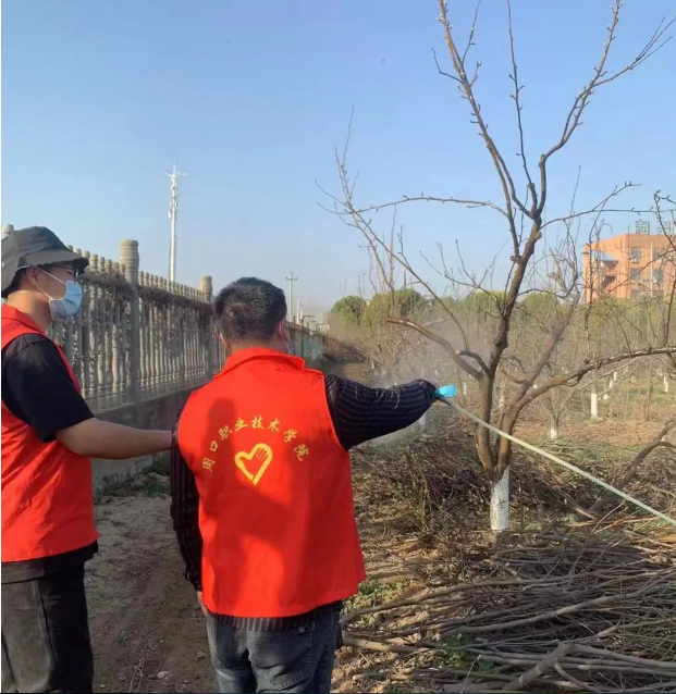为深入落实学雷锋,践行雷锋精神,2023年3月9日 yl8858永利园艺技术专业学子们到惠济康复医院果园开展了志愿助农喷洒农药活动.
