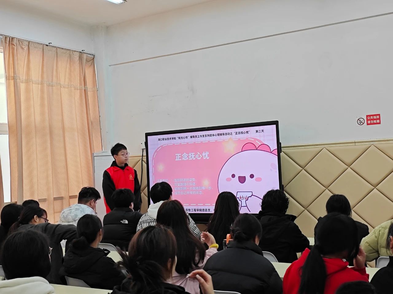 每次音频播放结束后,设有专门的时间供同学们自由发言和分享个人的感受与思考。这一环节不仅增进了同学们之间的交流和理解,还为大家提供了一个相互支持和鼓励的平台。同学们可以在分享中发现自己的进步,也可以从他人的经验中获得新的启发和灵感。在活动中,参与者们不仅学会了如何通过调整呼吸来缓解压力,许多人还表示在活动后感觉更加轻松和平静。