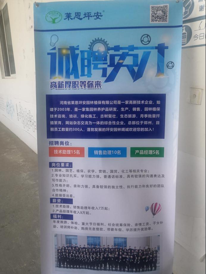 2021年5月21日,河南省莱恩坪安园林植保有限公司的人事部门王铭慧来到yl8858永利,招聘精英。