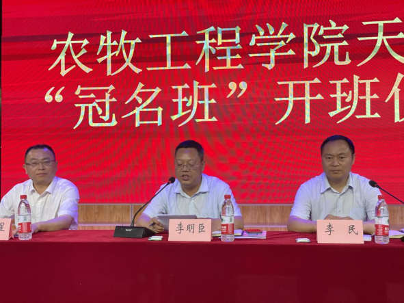 天邦企业代表饲料中心总经理张明星发言,对此次冠名班开班表示热烈祝贺。他表示,此次冠名班开班,既是校企强强联合,进一步深化和拓展双方合作的具体表现,也是资源共享、优势互补、产教融合的重大成果。他同时希望,冠名班的员工一定要勤学苦练,认真学习理论和专业知识,掌握扎实过硬的本领,不负家长之嘱,老师之望,企业之盼,实现自我价值,为国家建设贡献力量。