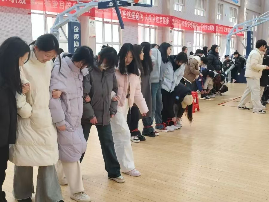 赛场上,同学们热情高涨,积极参与各个项目。五人六足中,大家喊着整齐的口号,步伐一致地奋力向前;拔河比赛现场气氛热烈,双方队员都使出浑身解数,你来我往,互不相让;蒙眼踢球环节更是笑声不断,参与者蒙着眼睛在场上摸索踢球,状况百出;跳绳游戏里,选手们轻盈跳跃,展现出别样的活力与风采。