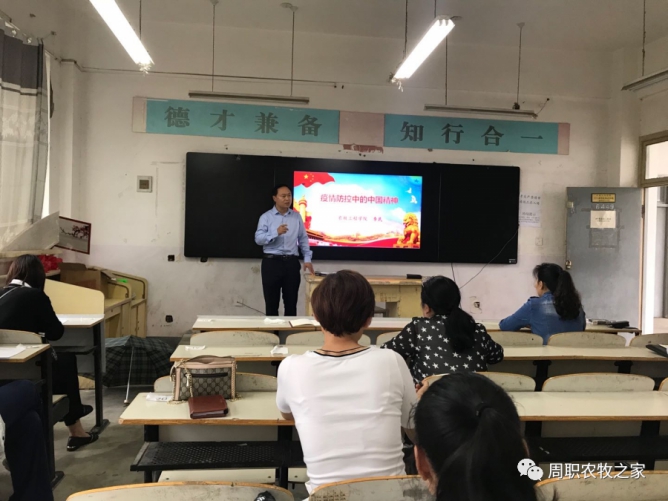 李书记从“应对及时、措施得力,争当先锋、敢于奉献,团结一致、乐观坚韧"三个方面讲述。一场疫情,见证了中华民族的干劲,万人齐心协力建医院。一场疫情,见证了中华民族的美德,一方有难八方支援。一场疫情,见证了中华民族的精神,迎难而上顽强拼搏。