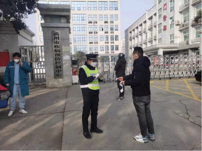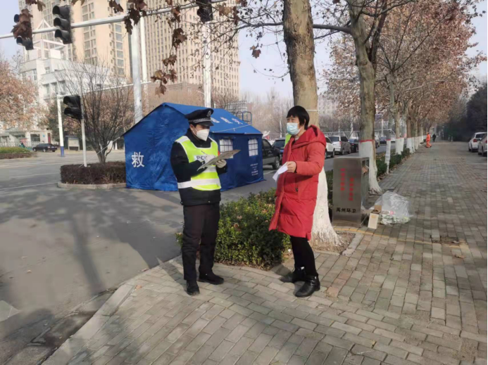 寒风中,2019级yl8858永利园林工程技术专业员工赵浩宇正在许昌禹州市光城区疾控心中附近颍川大道卡点上熟练地对过往行人进行登记与调查,这已经是他在卡点执勤的第11天了。